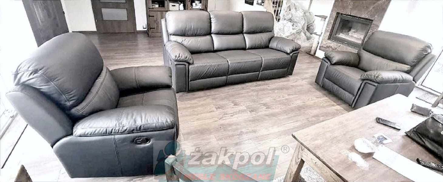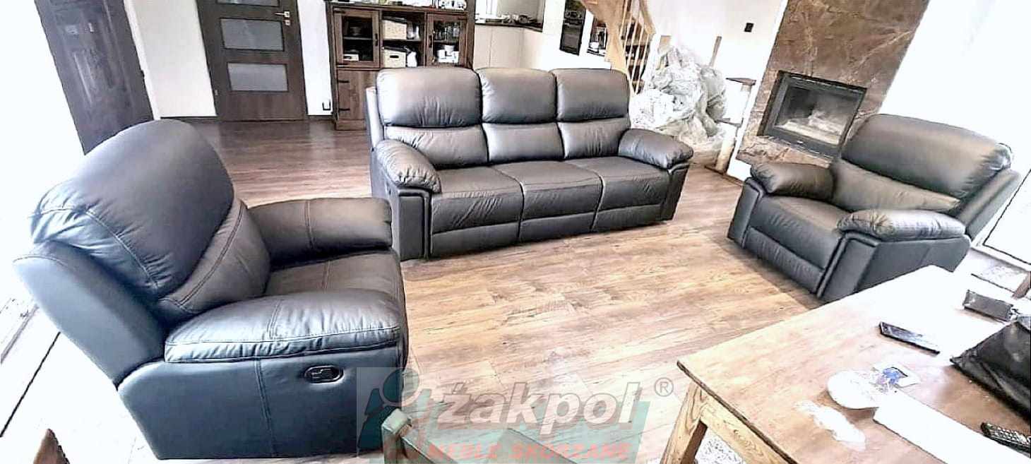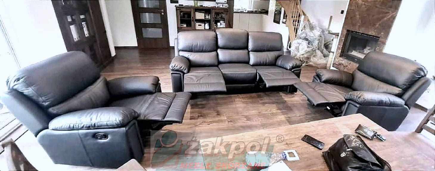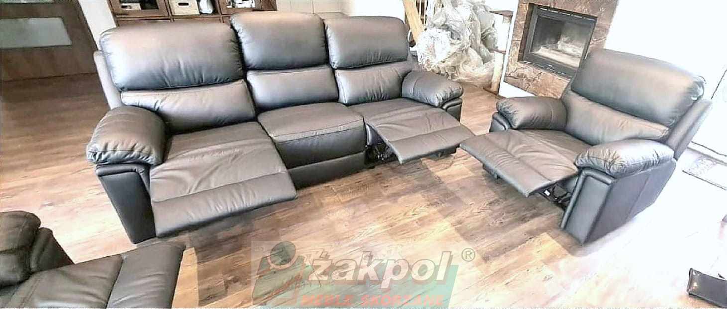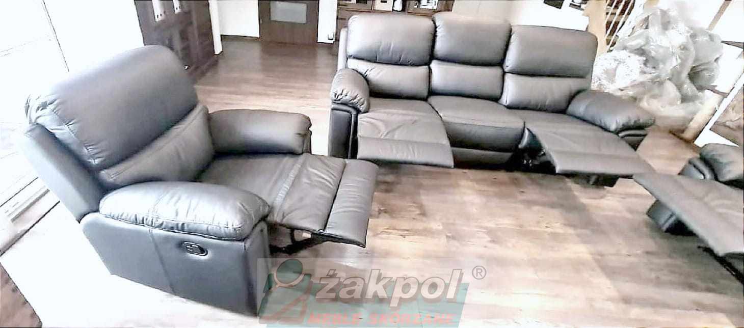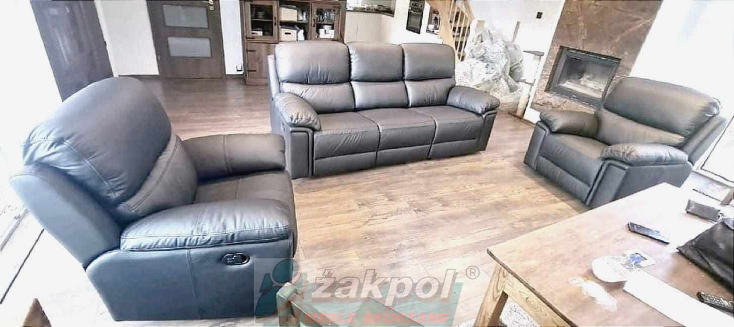 Super wygodne meble skórzane Floryda Relax 3+1+1 czarne