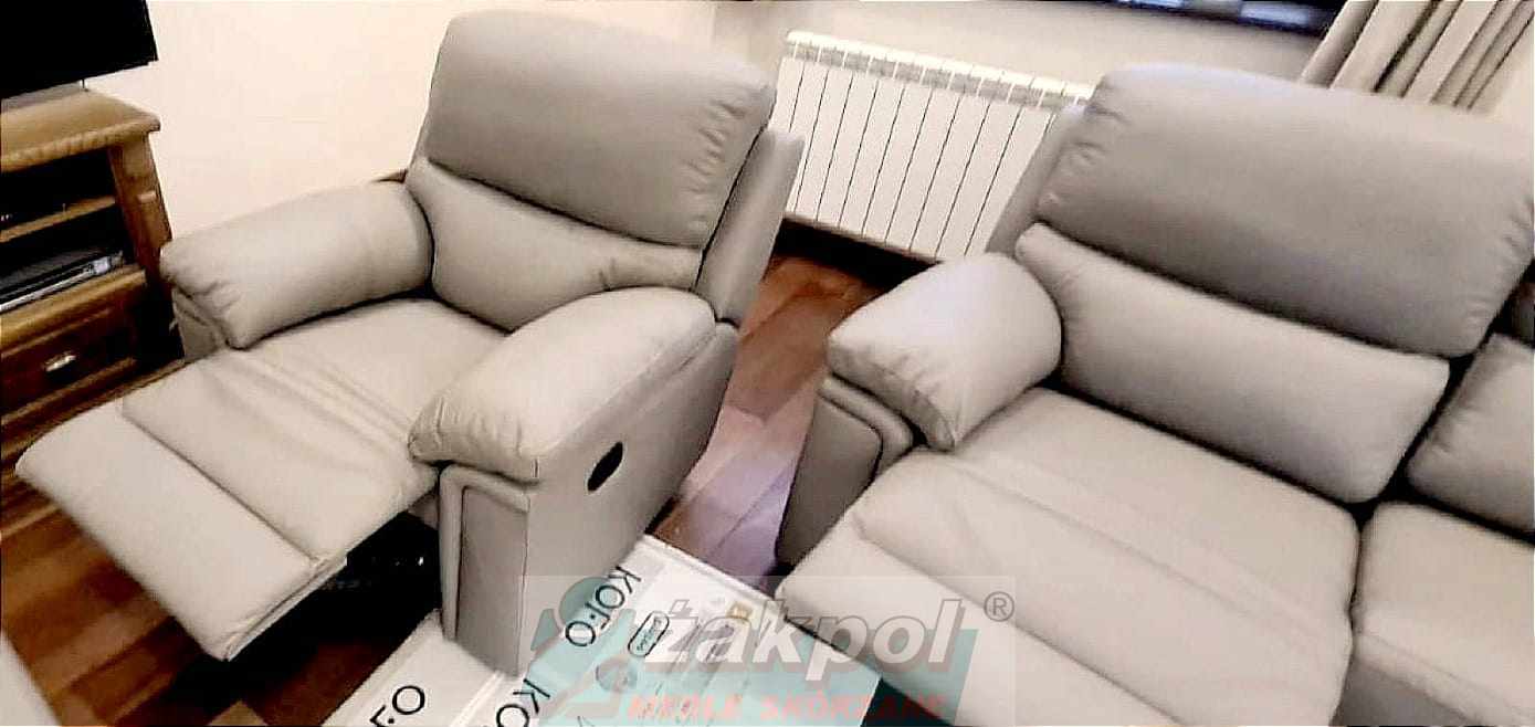 Wybierz skórzaną sofę z funkcją relaksu do nowoczesnego salonu oraz skórzany fotel relax z regulowanym oparciem. Otrzymasz transport mebli skórzanych do 100 km od Poznania GRATIS.