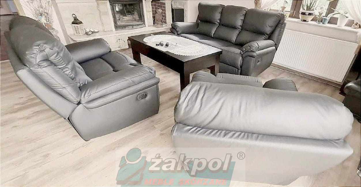 Wybierz skórzaną sofę z funkcją relaksu do nowoczesnego salonu oraz skórzany fotel relax z regulowanym oparciem. Otrzymasz transport mebli skórzanych do 100 km od Poznania GRATIS.