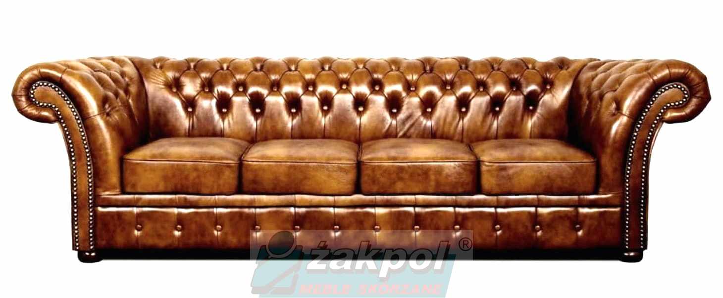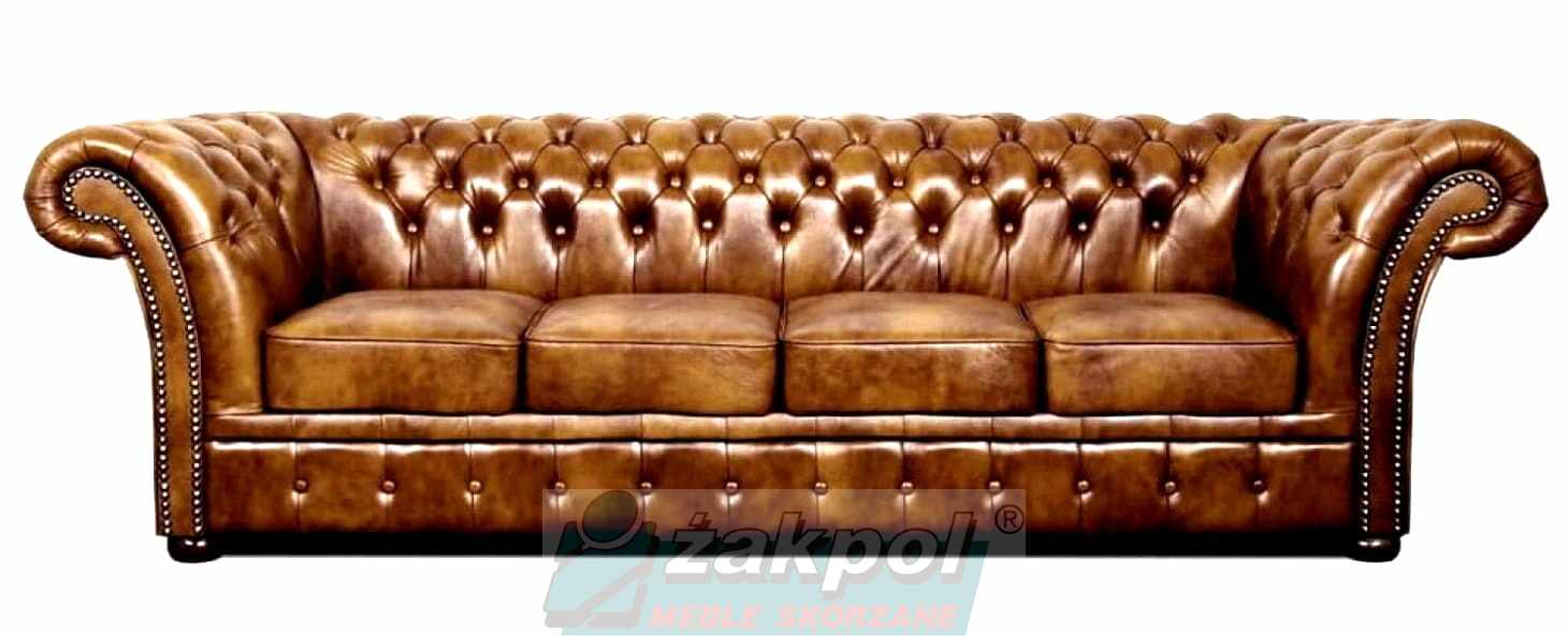 Chesterfield Kanapa 4 osobowa Royal Skóra Naturalna S12