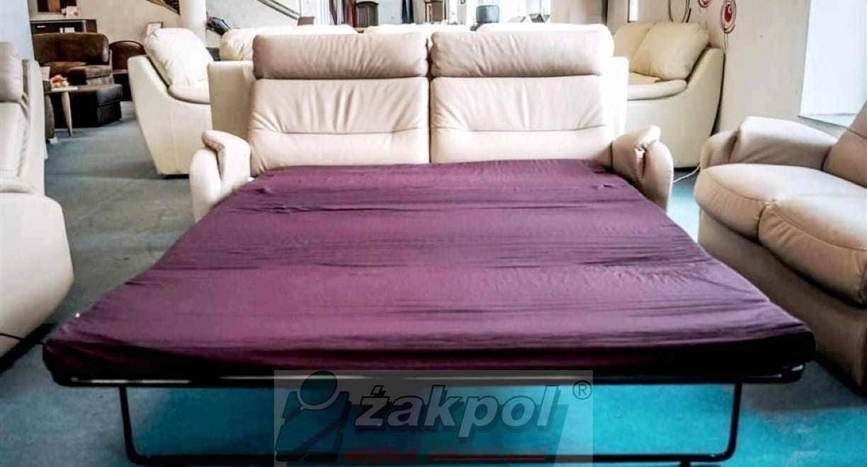 Oprócz standardowego koloru Cappuccino, masz do wyboru 20 kolorów skóry, dzięki czemu dopasujesz zestaw do każdego stylu wnętrzarskiego. Co więcej, istnieje możliwość zamontowania z funkcją spania w sofie 3 (system belgijski), co zmienia elegancki salon w funkcjonalną sypialnię dla gości.