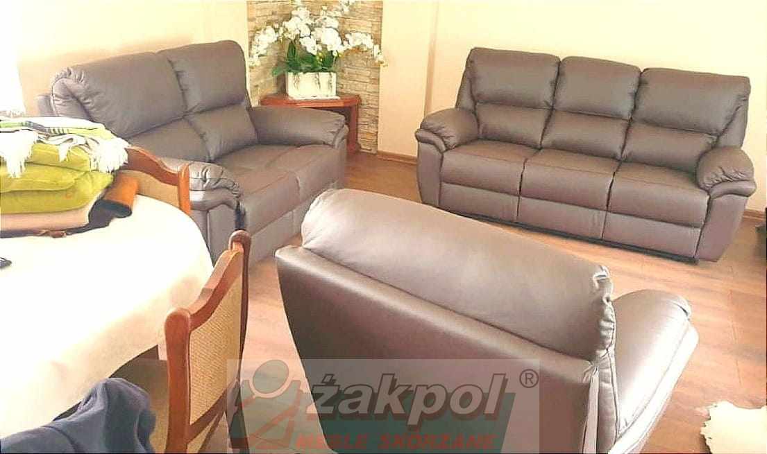 Wybierz skórzaną sofę z funkcją relaksu do nowoczesnego salonu oraz skórzany fotel relax z regulowanym oparciem. Otrzymasz transport mebli skórzanych do 100 km od Poznania GRATIS.