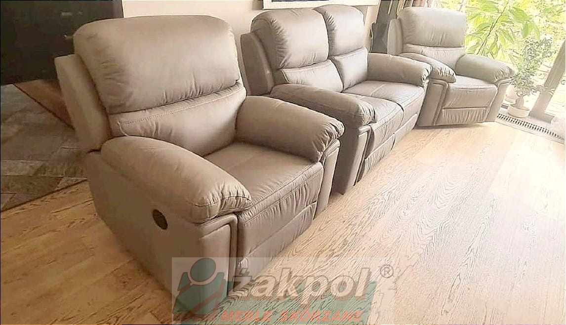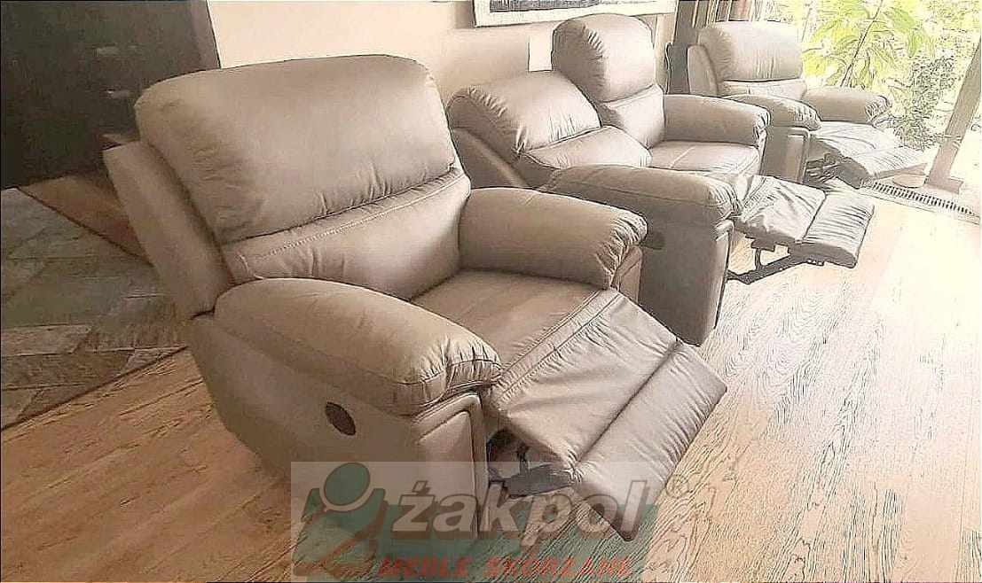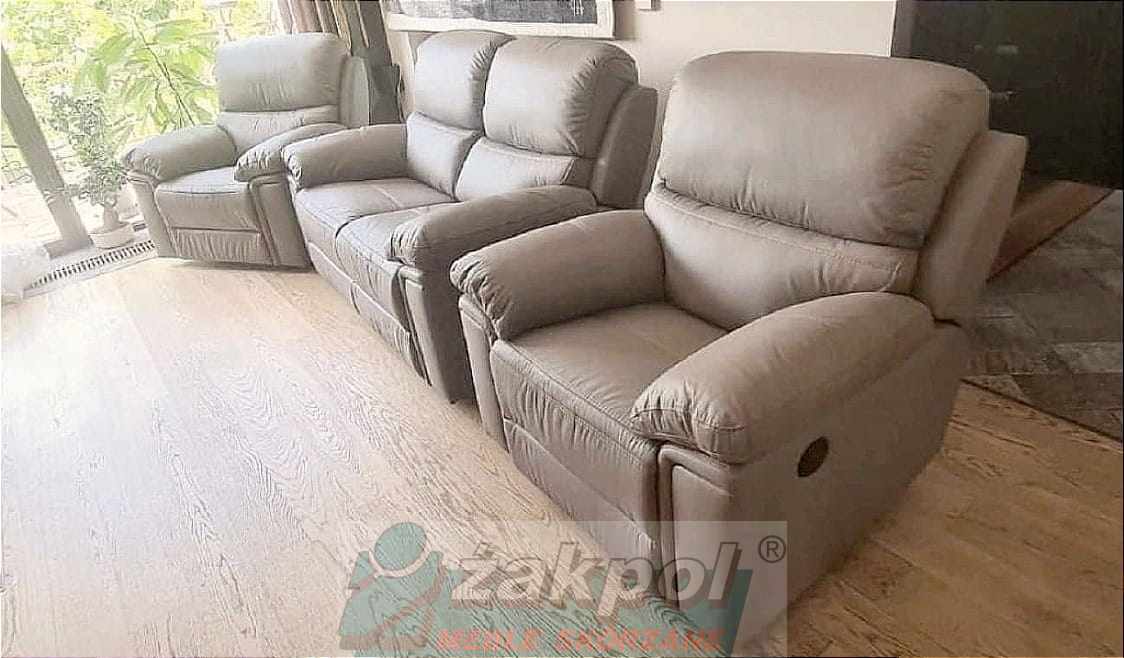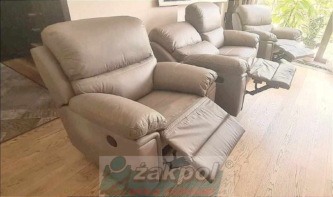 Wybierz skórzaną sofę z funkcją relaksu do nowoczesnego salonu oraz skórzany fotel relax z regulowanym oparciem. Otrzymasz transport mebli skórzanych do 100 km od Poznania GRATIS.