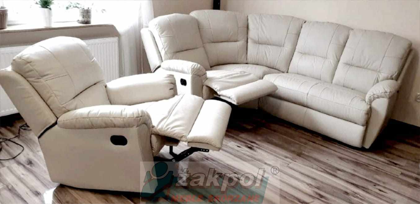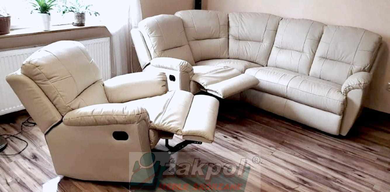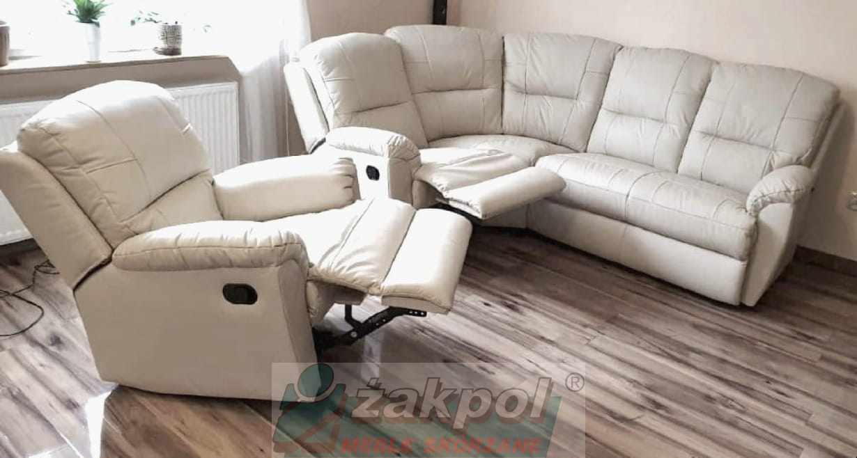 Narożnik skórzany 3n2 relaks Dubaj skóra naturalna włoska