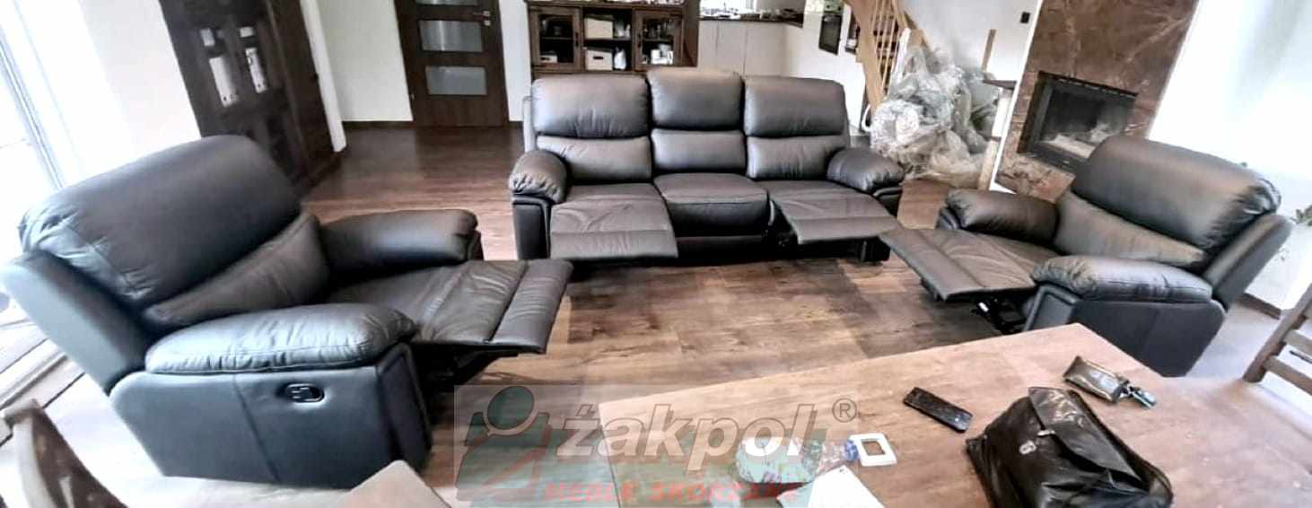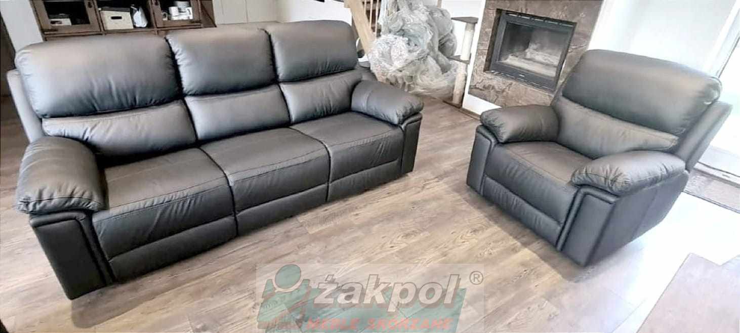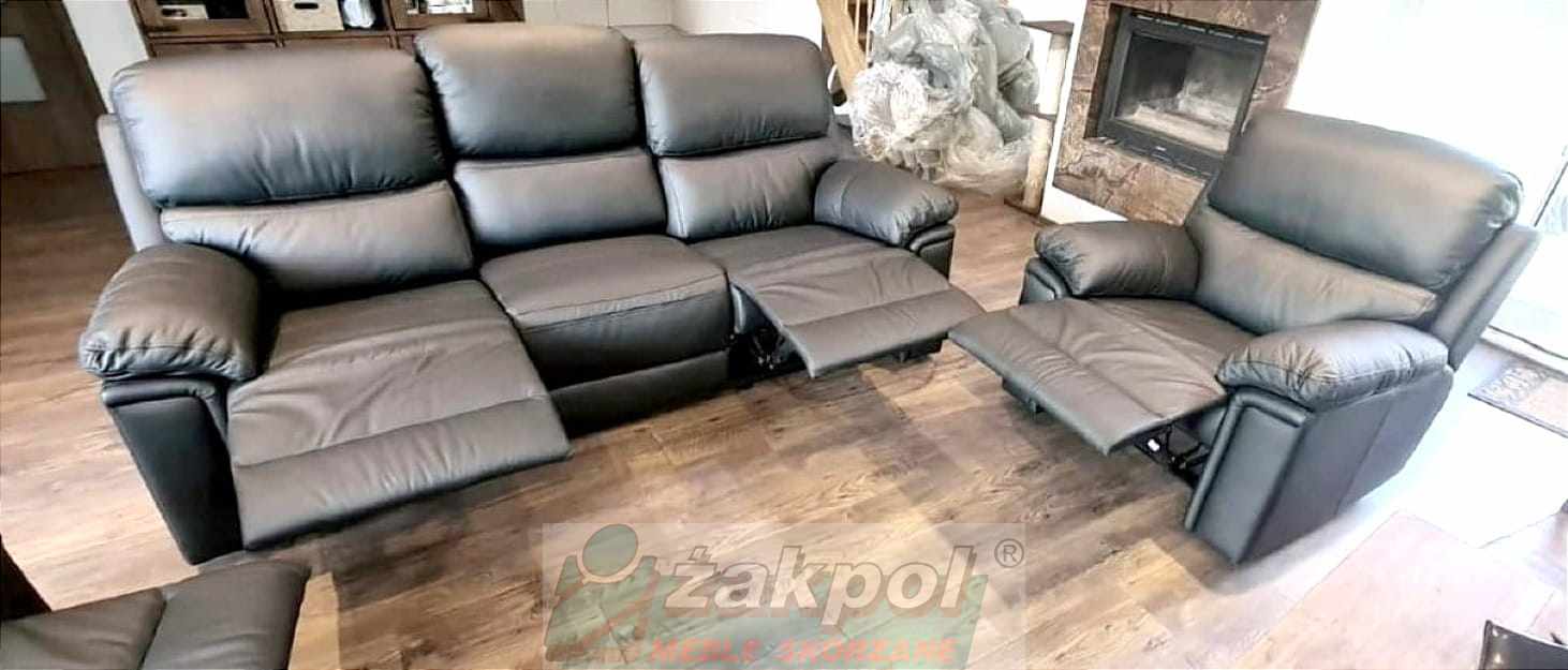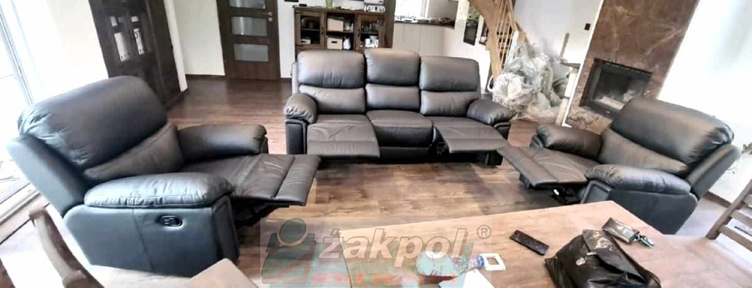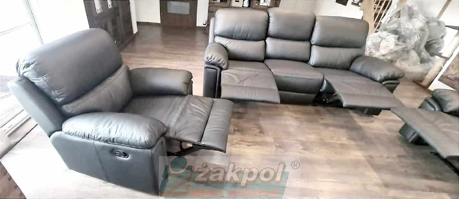Wybierz skórzaną sofę z funkcją relaksu do nowoczesnego salonu oraz skórzany fotel relax z regulowanym oparciem. Otrzymasz transport mebli skórzanych do 100 km od Poznania GRATIS.